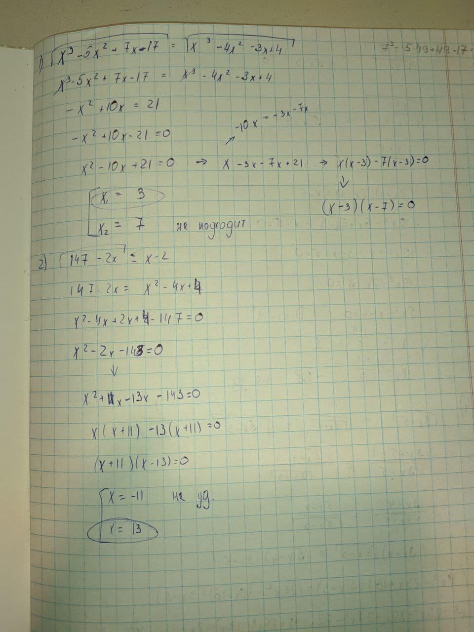 Последнее, хоть и страшное, но правильное( там х=4 и х= )