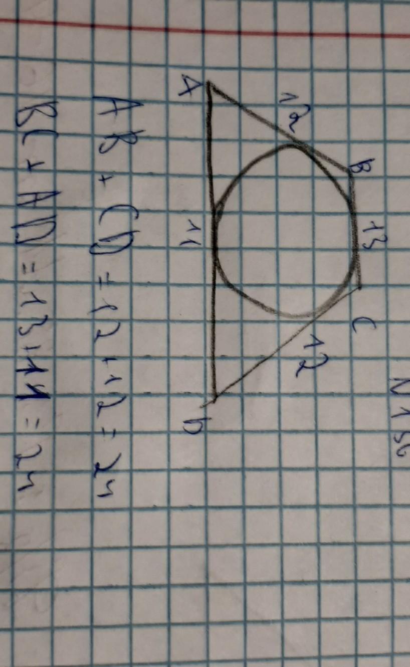 По-перше мы додамо 12 +12 =24 це 2 бічні сторони, по друге, інші сторони в сумі мають дорівнювати теж 24 і тому будь яка пара числ сумою 24 сюди підійде. Я взяла 13 та 11