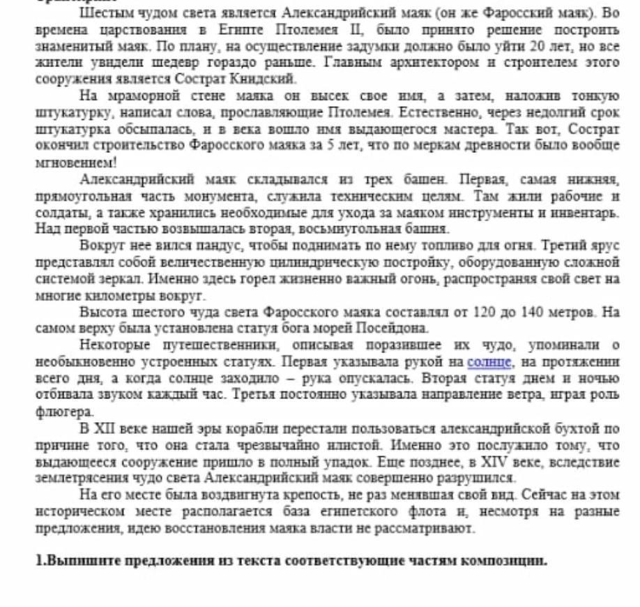выпишите предложения из текста соответствующие частям композиции.помогите мне очень нужно быстрее это сор