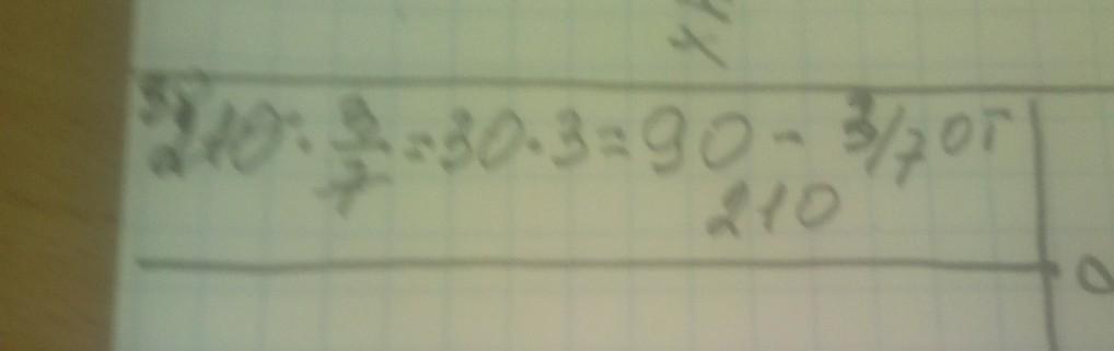 3/7 * 210 = 210 * 3/7 = 30*3=90