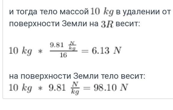 Тело имеет массу 10 кг. Какая сила тяжести действует на это тело на высоте десяти земных радиусов от поверхности Земли?
