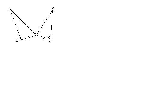 Треугольники равны по стороне и двум прилежащим к ним углам, то есть по второму признаку. AO=AD, угол А = углу D по условию, угол BOA и СOD как вертикальные