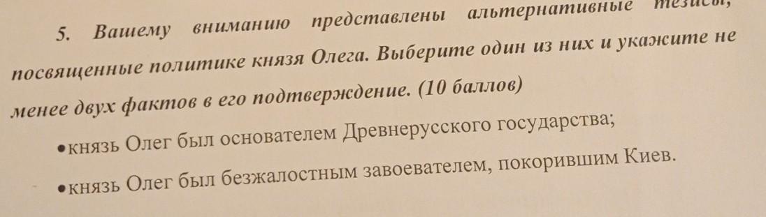 посвященные политике князя Олега. Выберите один из них и укажите не