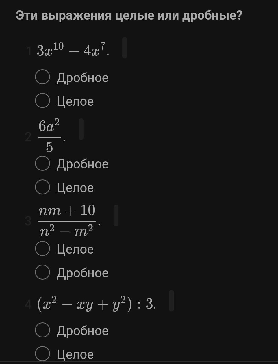 4. Дробное, т.к. деление можно заменить чертой дроби.