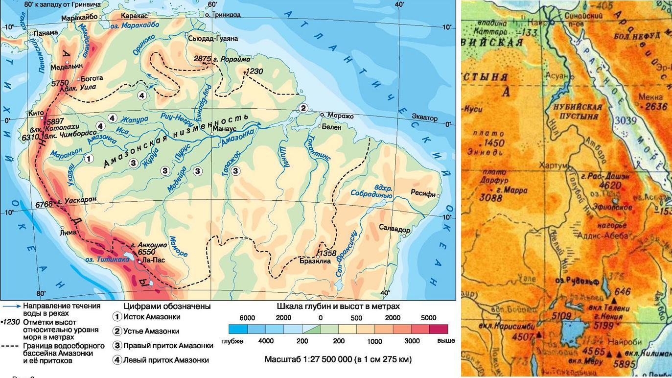 Если мы посмотрим на карту, которая дана ниже в приложении, то увидим, что Амазонка-это равнинная река, протекающая по Амазонской низменности.Поэтому и характер течения у неё равнинный.Река Нил протекает в основном по плоскогорьям, поэтому имеет пороги и водопады.Это бурная река в верхнем и среднем течении.В нижнем течении она протекает по равнинной местности и имеет равнинный характер.