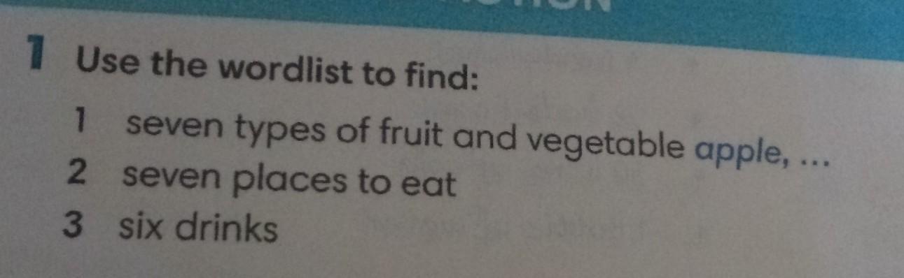 1. fruit:apple,banana, pear, mango, coconut, orange ,lemon, peach