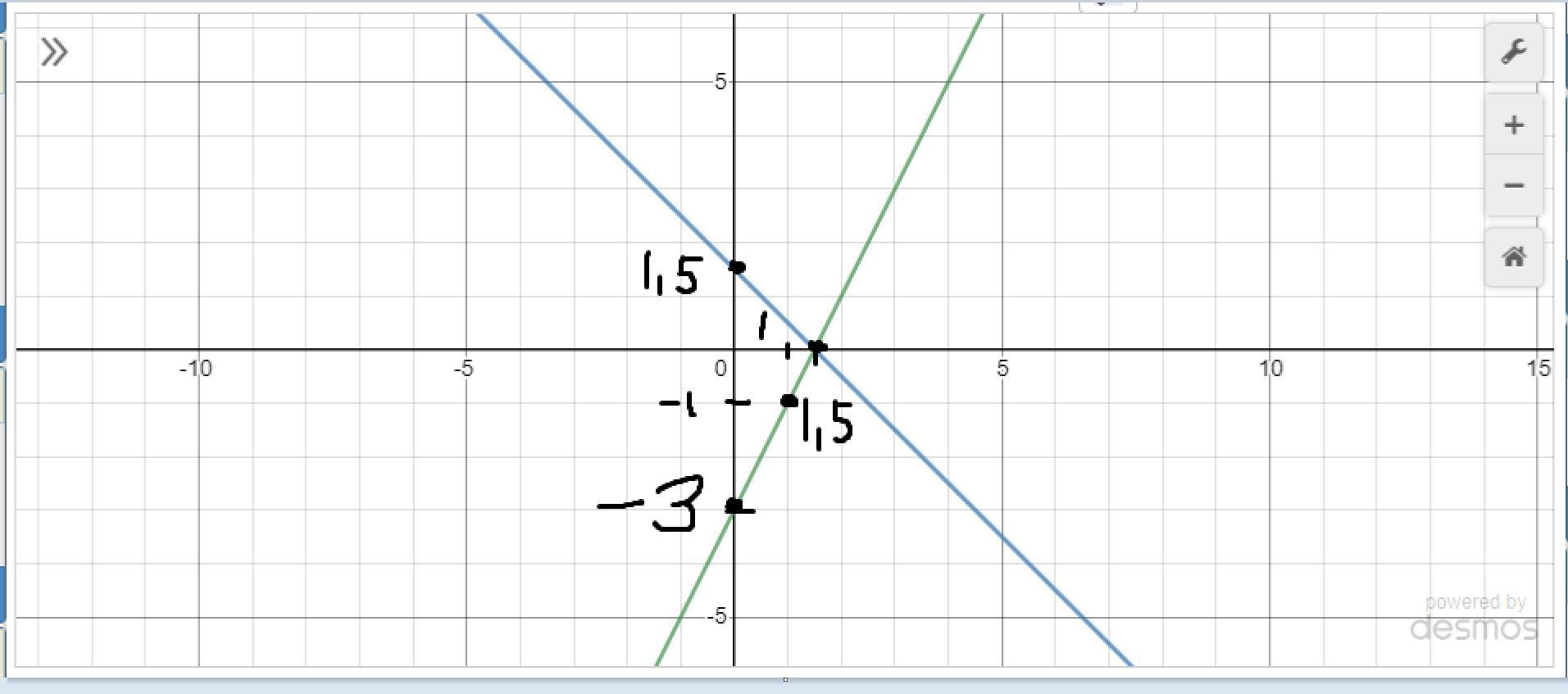 y=-x+1,5 и y=2x-3 - графики на фотографии.