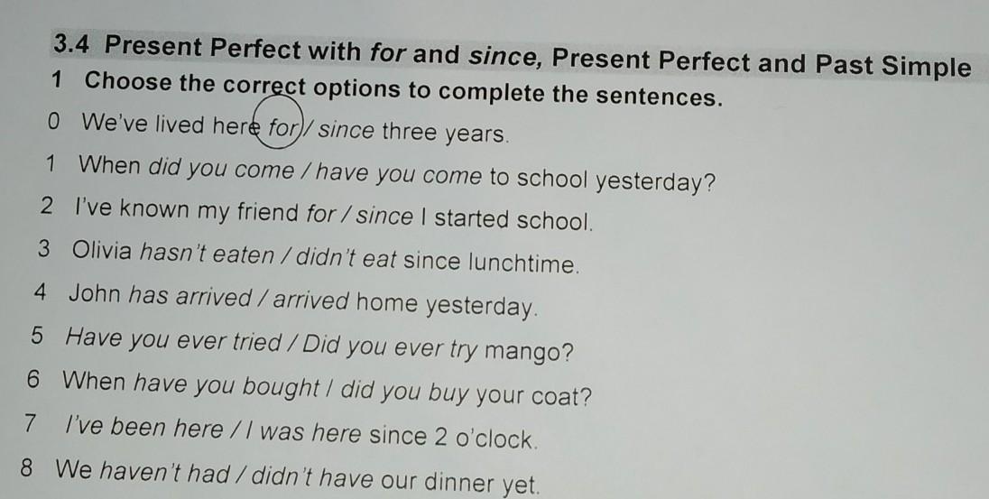 1)for 2)have you come 3)since 4)arrived 5)Have you ever tried 6)When did you 7)i've been here 8)We didn't have