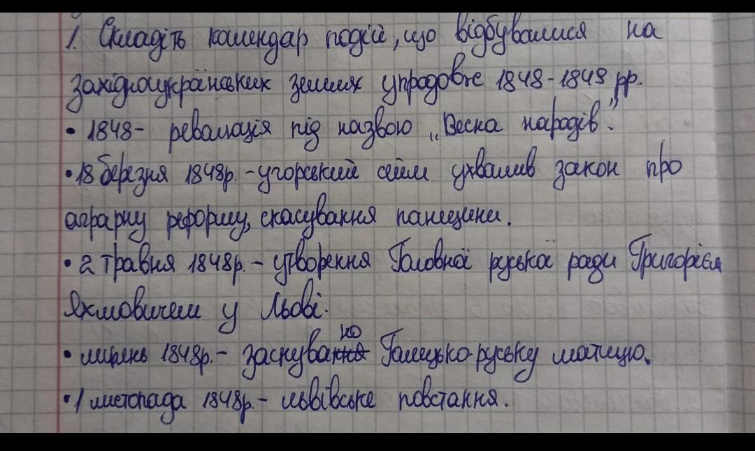 1. Складіть календар подій, що відбувалися на