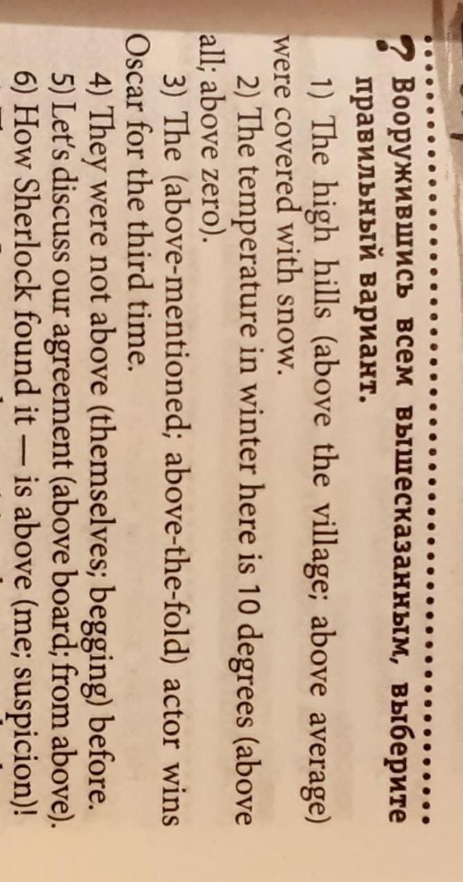 1 above the village 2 above zero 3 above-mentioned 4 begging 5 above board 6 me
