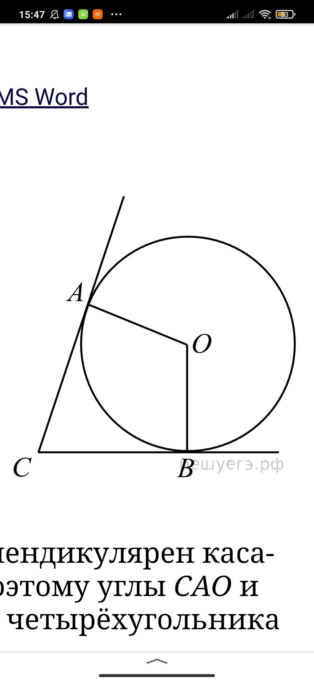 В угол С вписана окружность с центром в точке О, которая касается угла в точках А и В. Угол АОВ= 93°. Найдите величину угла С.