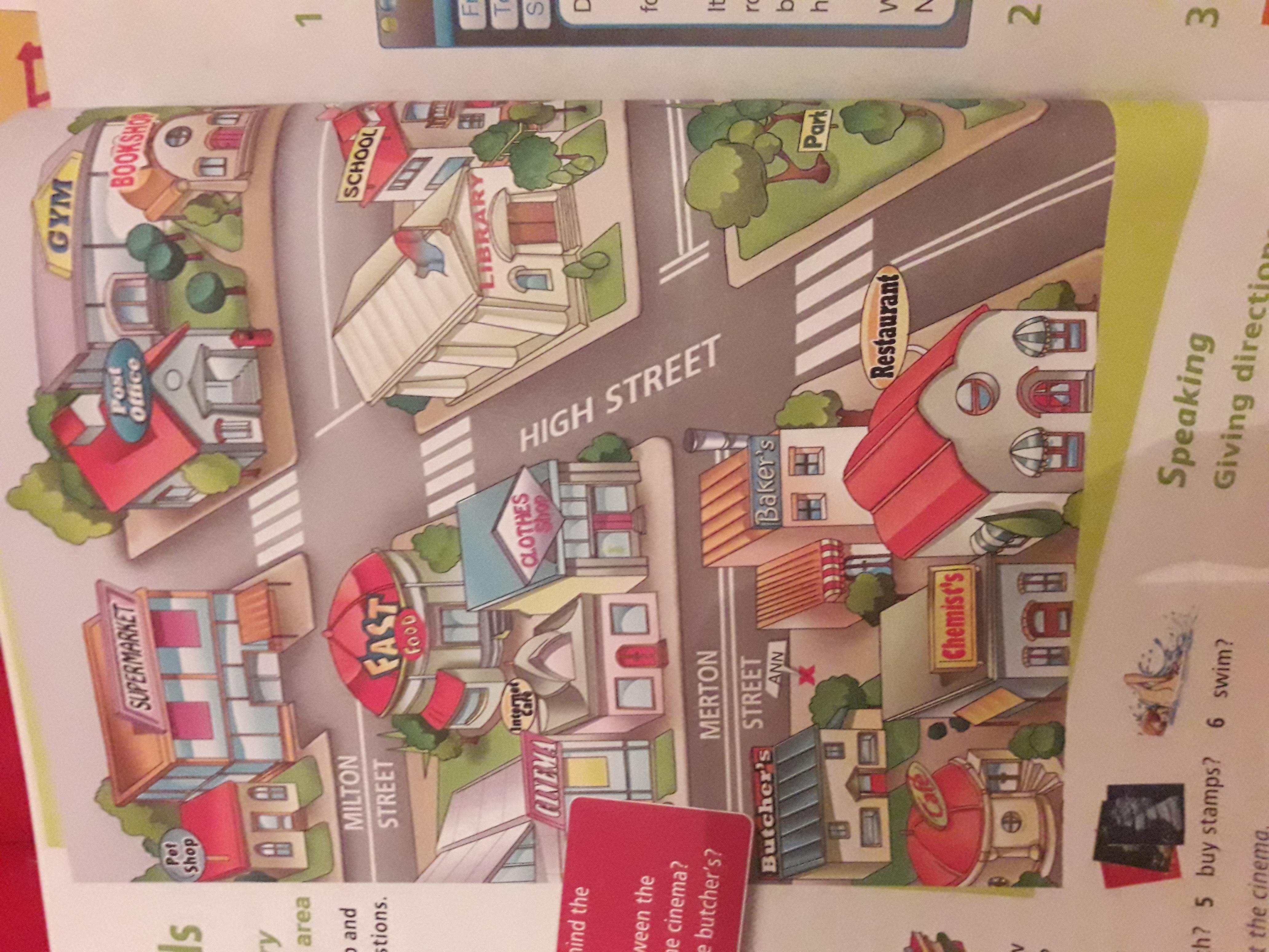 Ответ: when you come out of supermarket go straight on high street until bakery , then turn left. You’re in park!