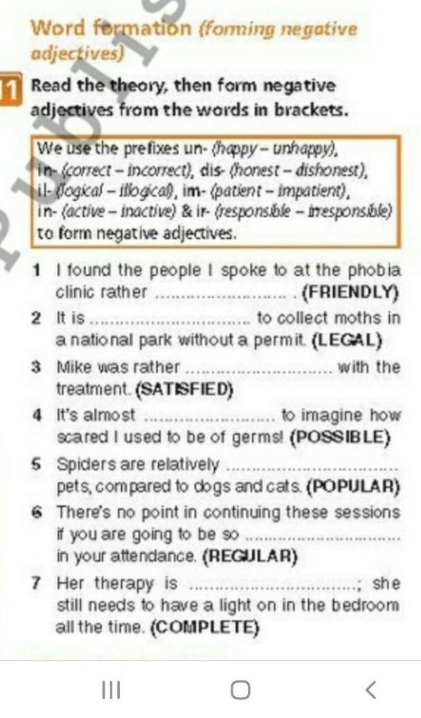 Unfriendly, illegal, unsatisfied, impossible, unpopular, irregular, incomplete