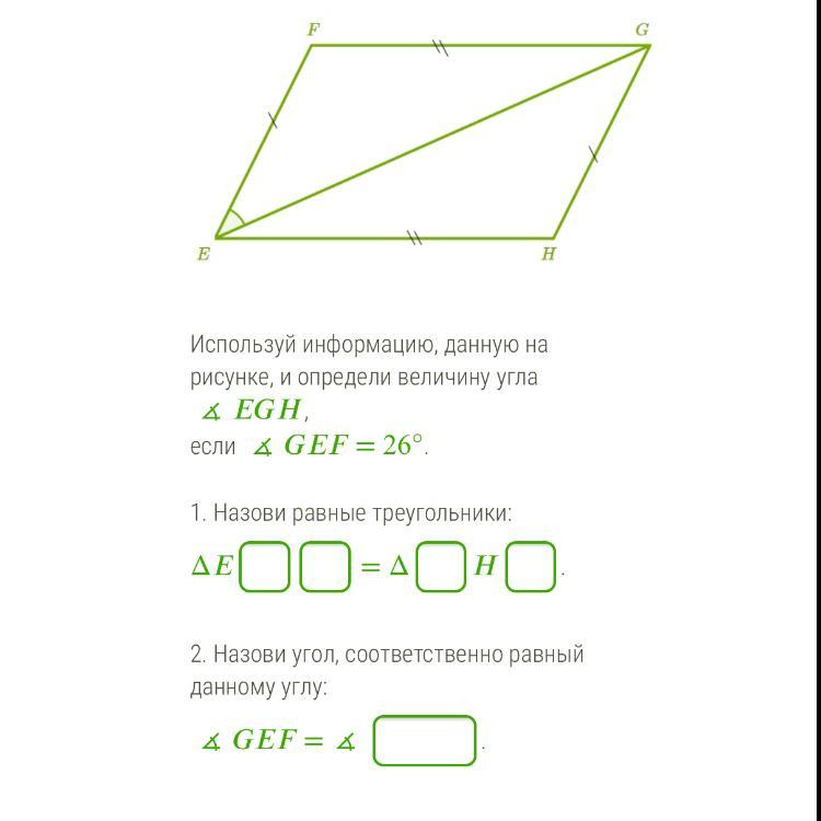 2. Угол GEF равен углу EGH, так как они накрест лежащие, при параллельных прямых FG и EH.