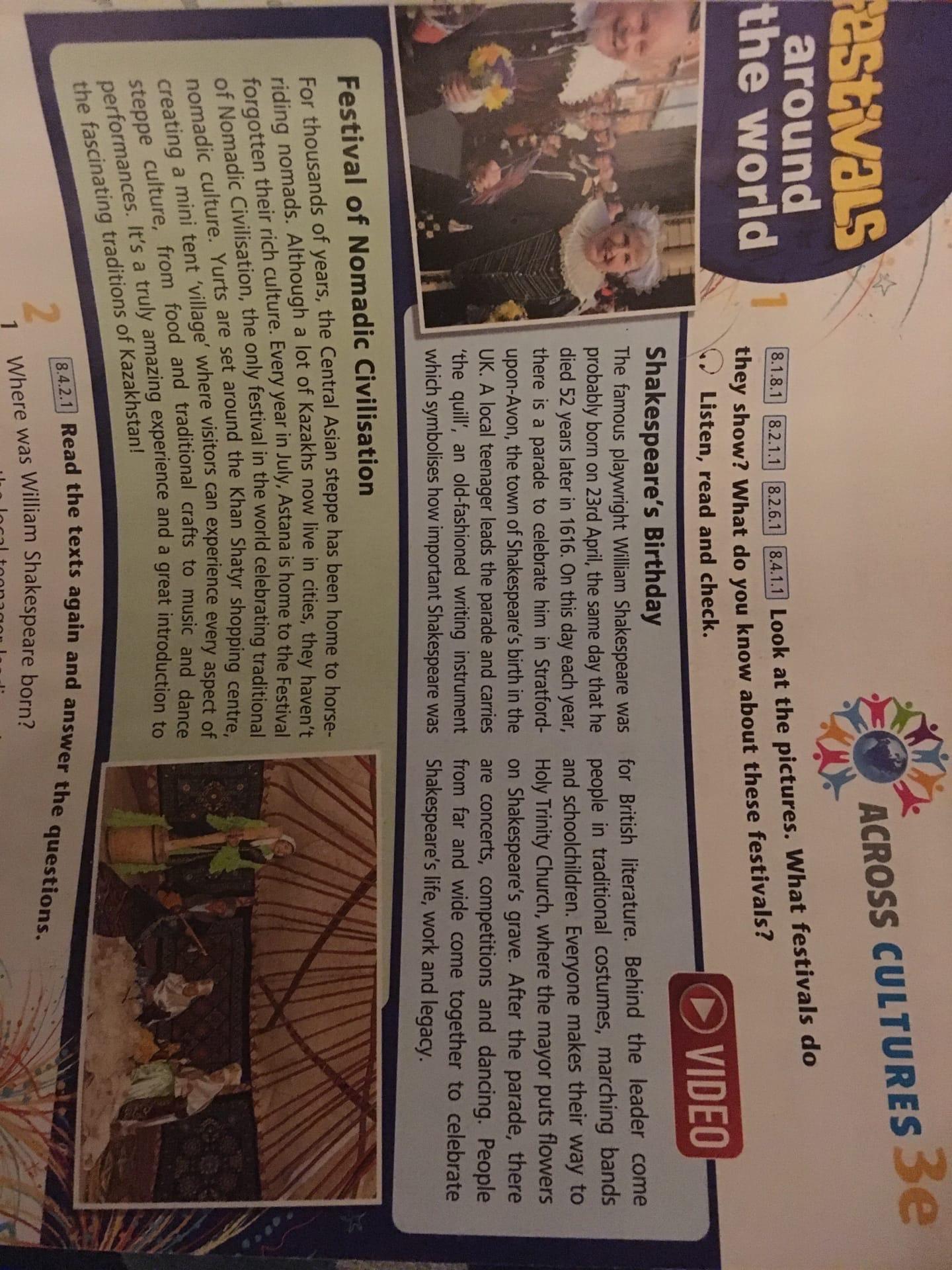 1) William Shakespeare was born in Stratford-upon-Avon, in United Kingdom.