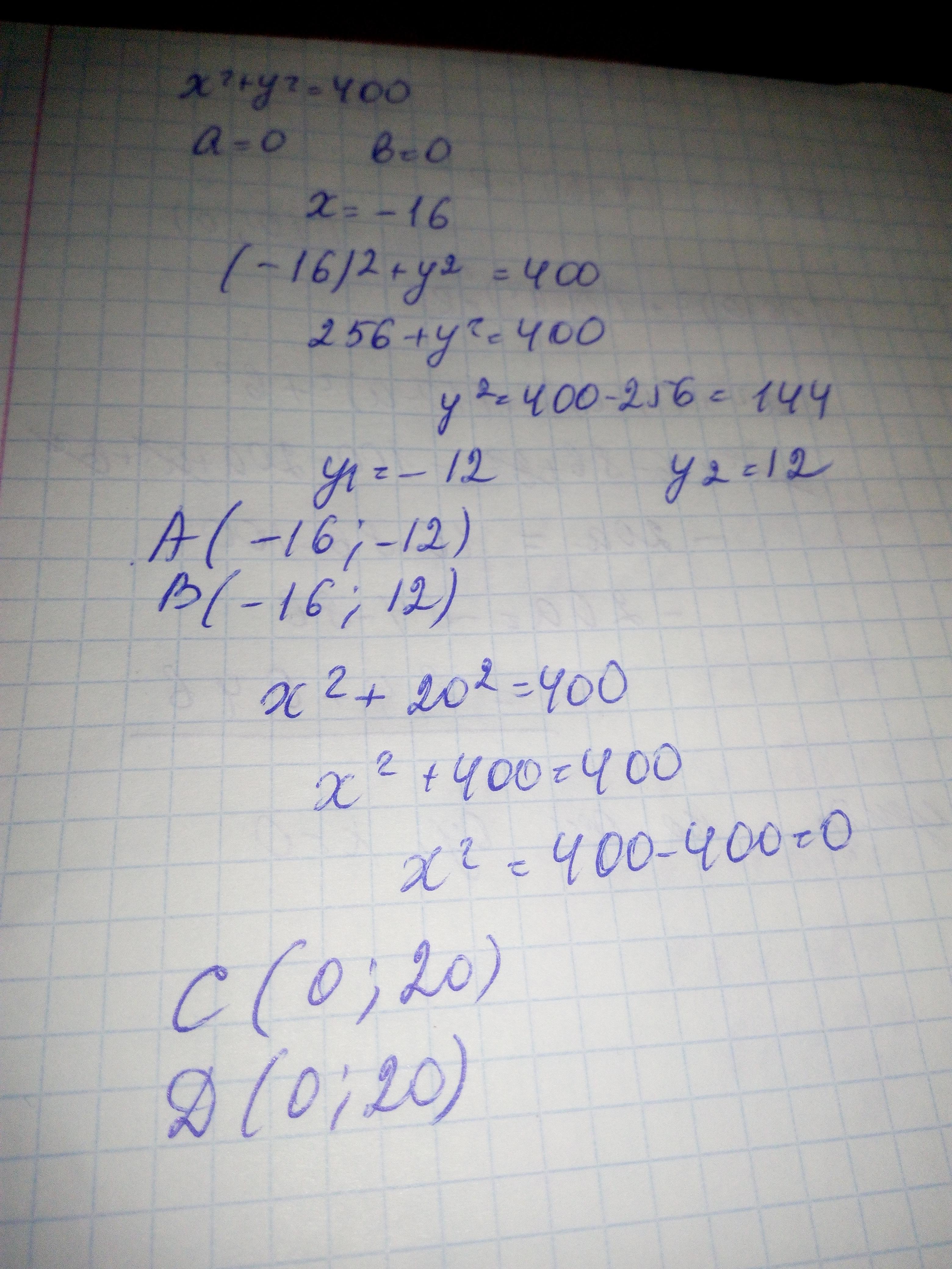 2. Найди абсциссу точек на этой окружности, ордината которых 20.