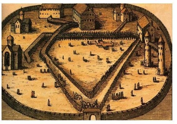 Александровский кремль XVI в. Гравюра из книги посла Даниила Якоба Ульфельдта "Путешествие в Россию". Начало XVII в.