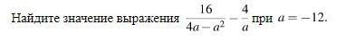 16/4а-а²-4/а= 16-16+4а/а(4-а)= 4а/а(4-а)=4/4-а=4/4-)-12)=4/4+12=4/16=1/4