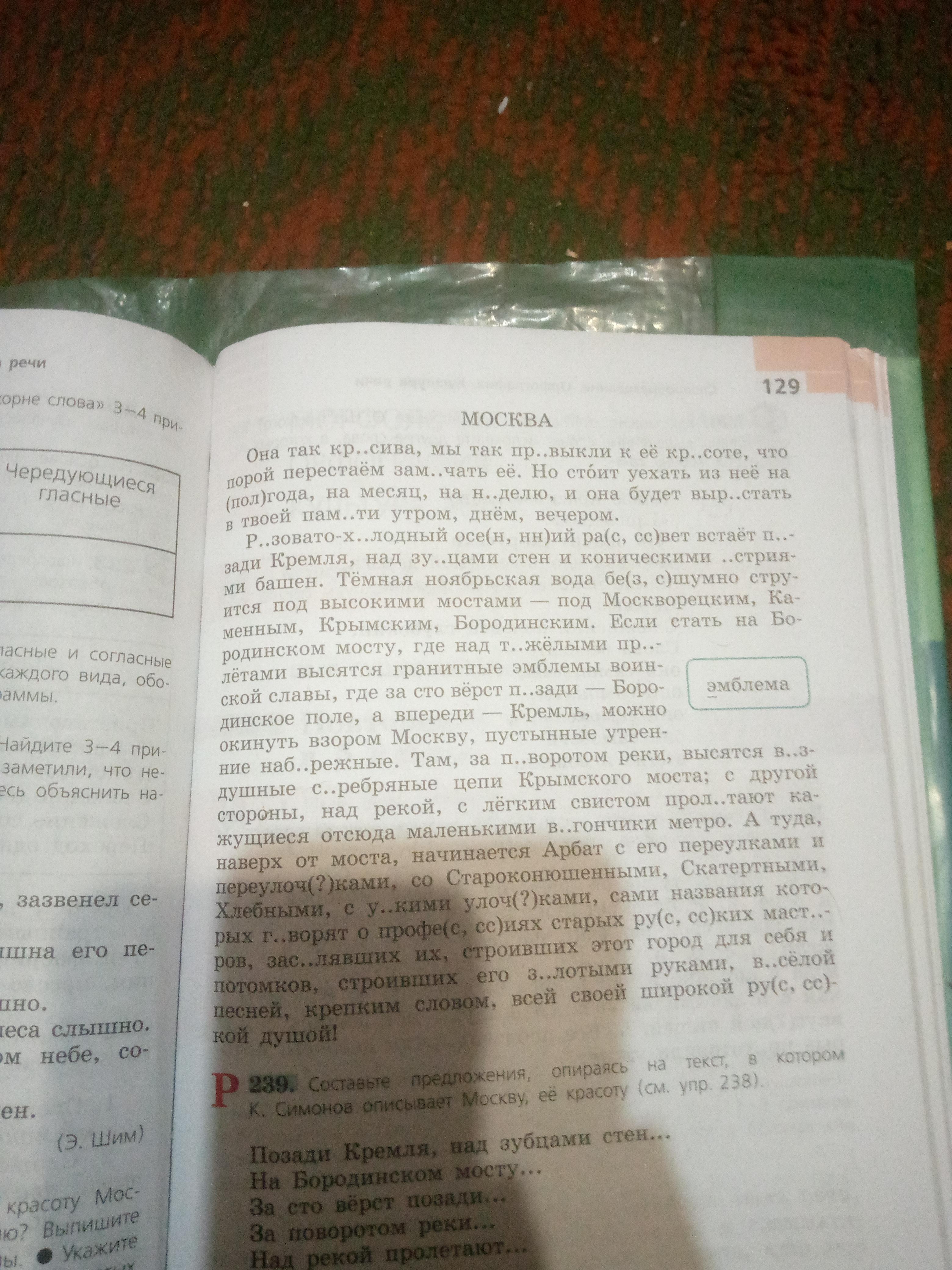 Выписать из текста слово с чередованием гласных в корне слова. Никольский упражнение номер 238 ниже фото