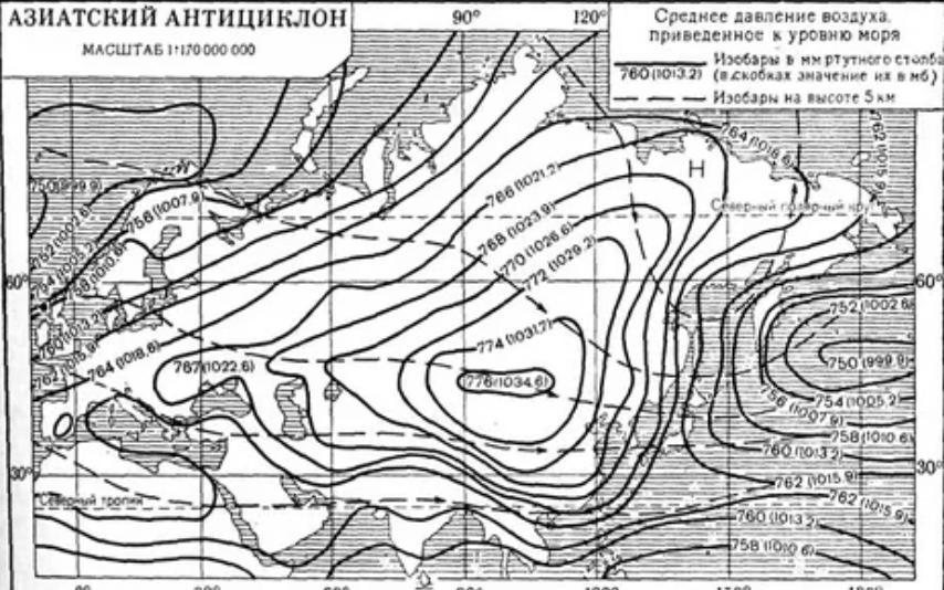 4. Сибирским антициклоном или зимний Азиатский максимум