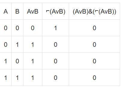 (A V B) & ¬ (A V B) Составить таблицу истинности