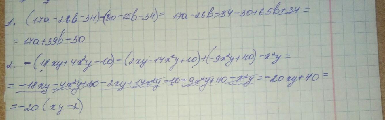 2. - (18xy +4x^2y - 10) - (2xy - 14x^2y +10)+( - 9x^2y+40) - x^2y