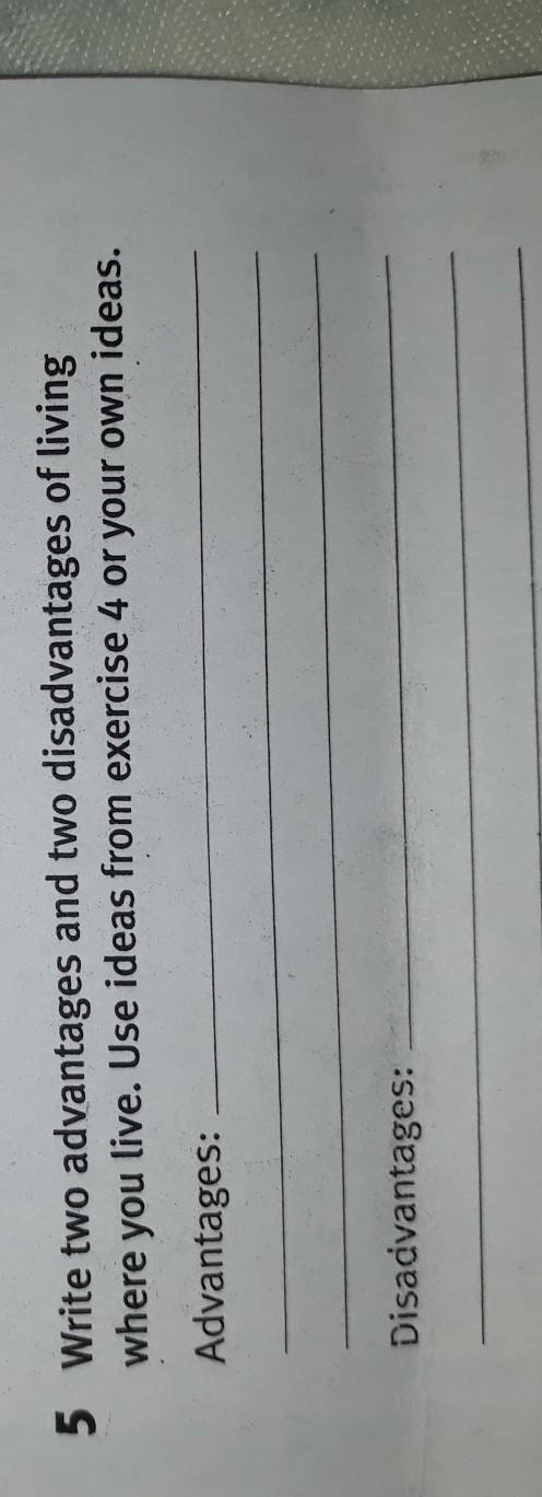 сматрі тобі треба написати 2 недоліка і 2 доброго що є у твому місті/селі (напиши в перекладачі тіпа " у нас хороші дороги" і все готово
