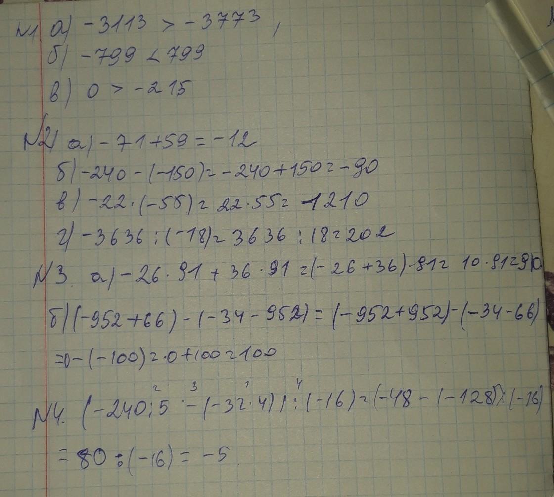 . Сравните числа : а) – 3113 и – 3773; б) -799 и 799; в) 0 и -215 .