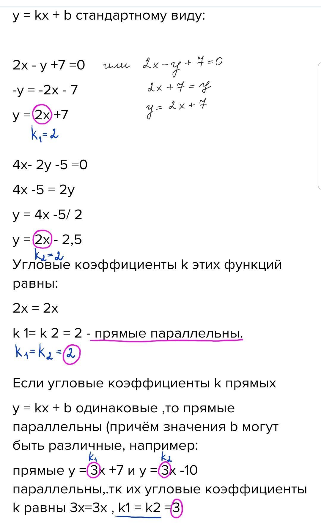 у = kx + b одинаковые ,то прямые параллельны (причём значения b могут быть различные, например: