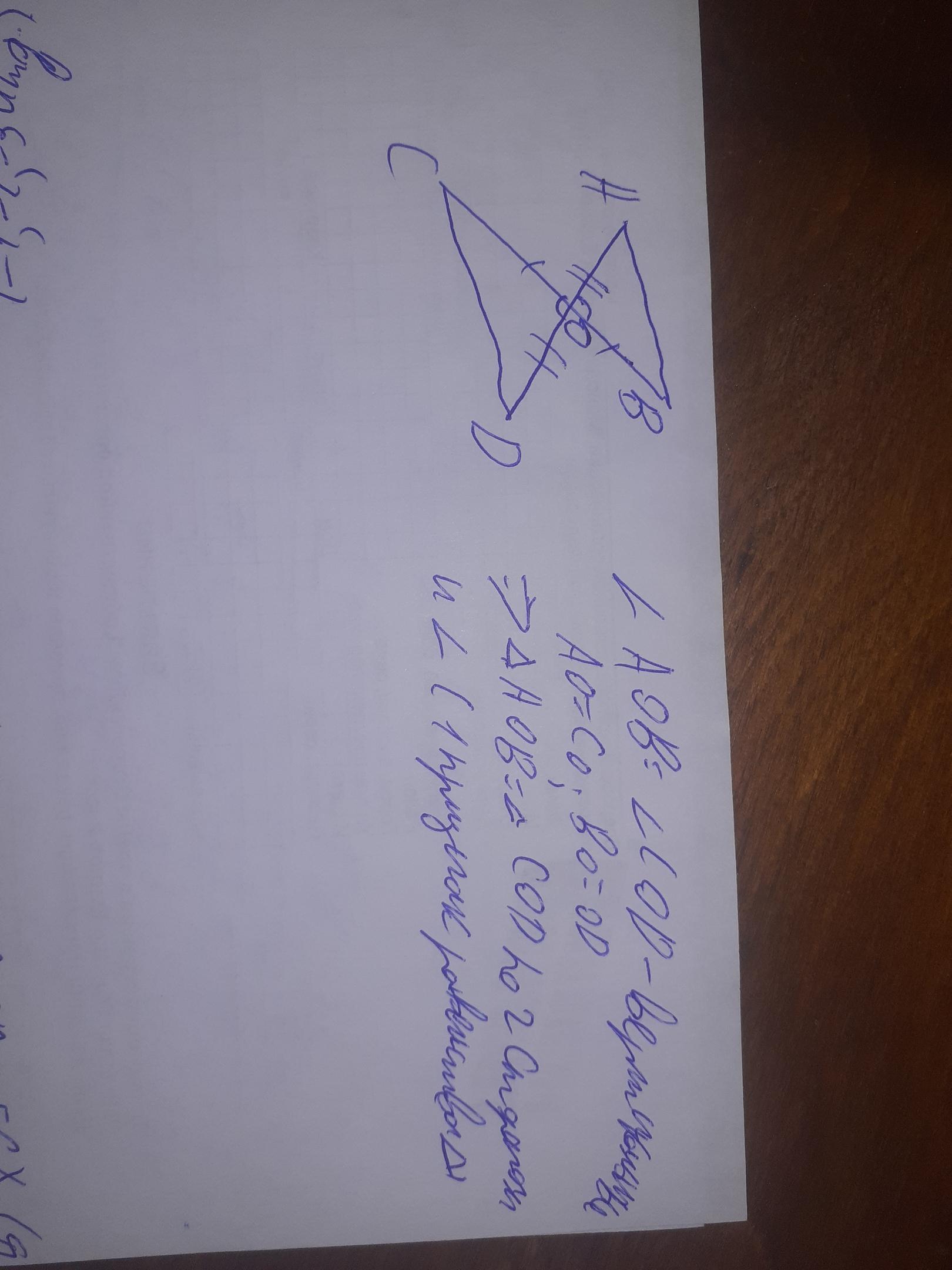 Треугольники равны по первому признаку ( по 2 сторонам и углу)
