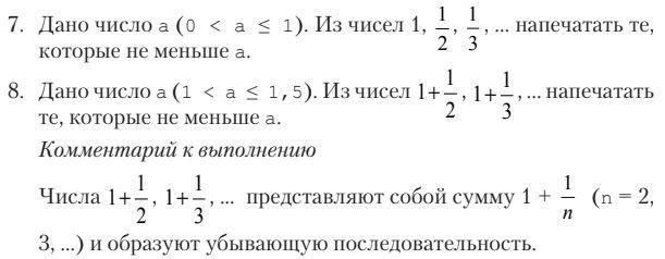 7. Дано число а (0 < а ≤ 1). Из чисел 1, 1/2, 1/3, ... напечатать те, которые не меньше а.