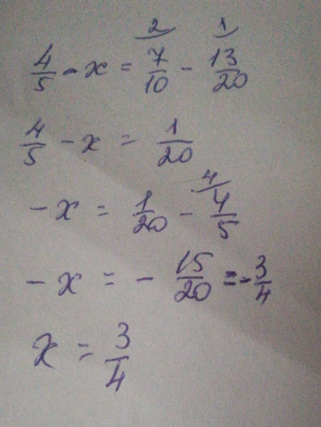 3)(4/5-x)+13/20=7/10-все уравнение можно помножить на 20