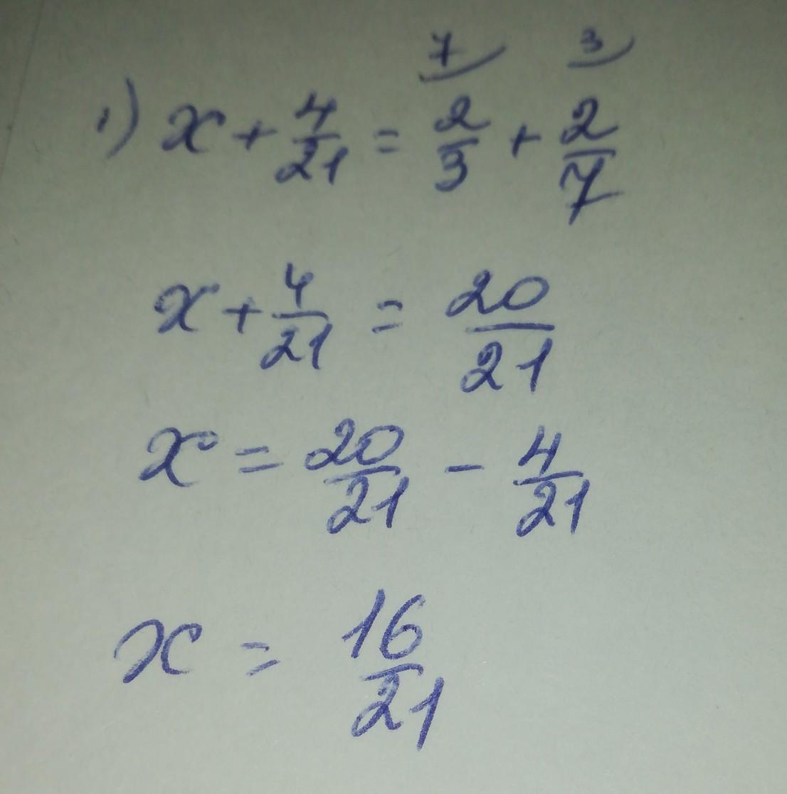 1)x+4/21=2/3+2/7-можно помножить все уравнение на 21