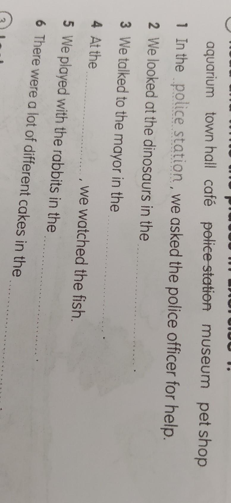 Ответ: 2. museum 3. town hall 4. aquarium 5. pet shop 6. cafe