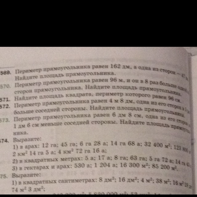 6,8дм - 1,6дм х 2 = 3,6 дм - был бы периметр, если бы стороны все были равны. 3,6 : 4 = 0,9 дм - длина меньшей из сторон, тогда большая будет 0,9+1,6= 2,5дм. Отсюда площадь прямоугольника = 2,5 х 0,9 = 2,25 кв. дм