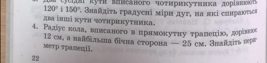 В четырехугольник можно вписать окружность, если сумма противоположных сторон равны. Значит нам нужно найти хотя бы одну сумму.
