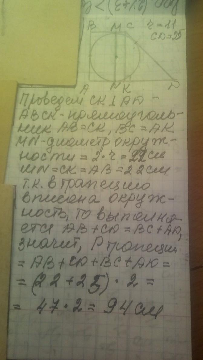 Высота трапеции=меньшей боковой стороне=2 радиусам=24 см