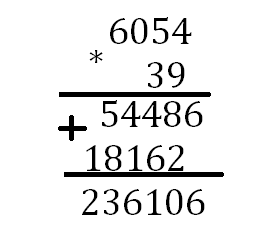 2)6054*39=236106
