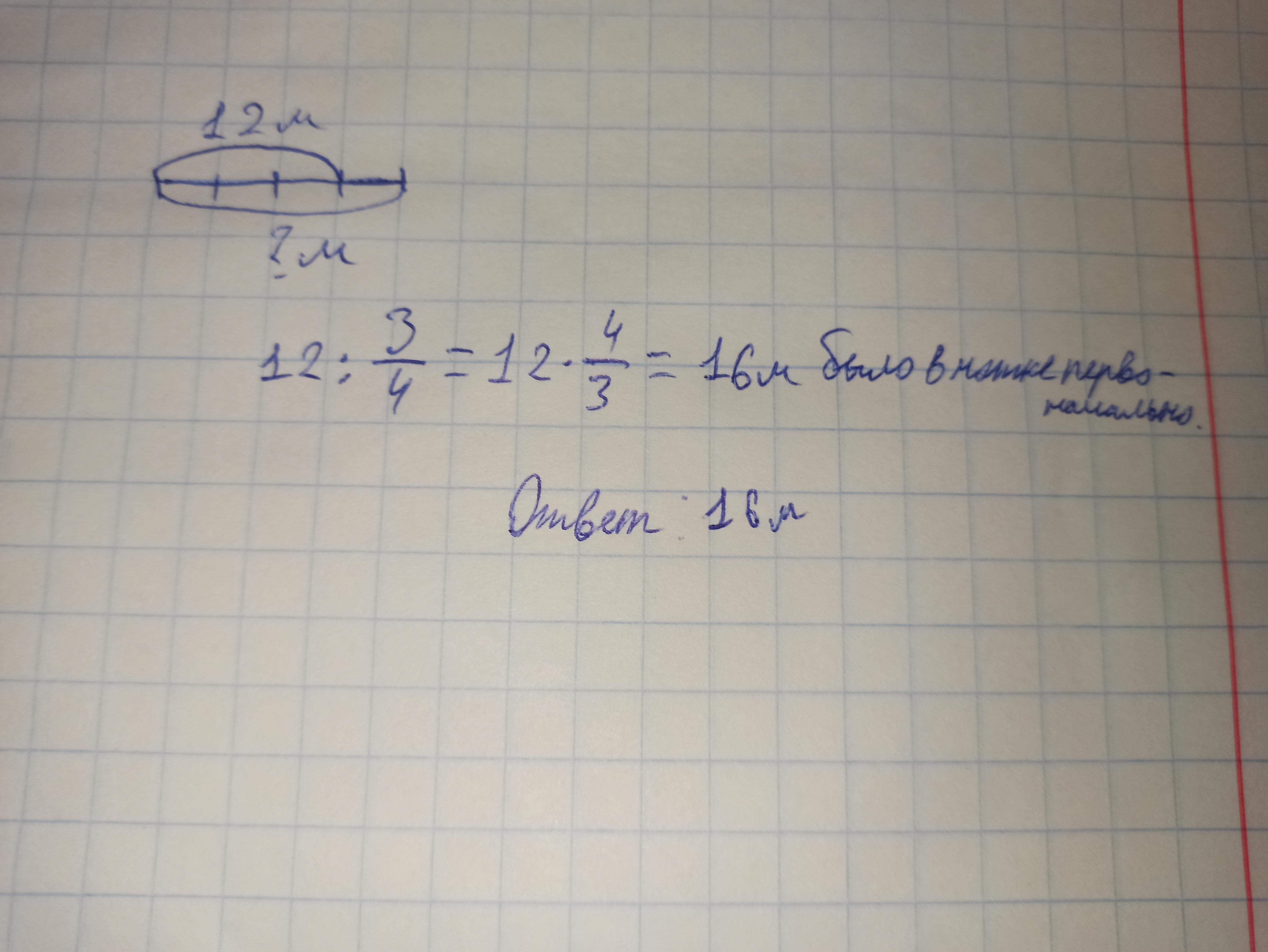 12 ÷ ¾ = 12 × 4/3 = 48/3 = 16 м.