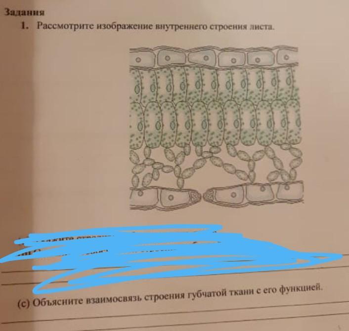Губчатая ткань представлена рыхло расположенными округлыми клетками, между которыми находится большое межклеточное пространство. Это пространство ещё называют воздухоносными полостями. Через них осуществляется газообмен и испарение воды.
