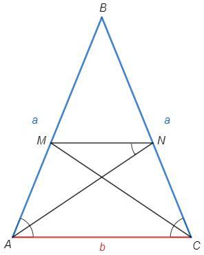 В равнобедренном треугольнике АВС известны стороны AB =ВС= a, АС= b. Отрезки AN и CM – биссектрисы углов А и