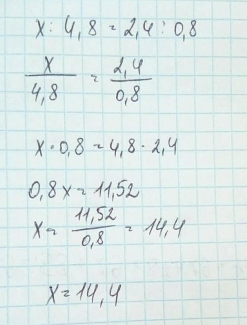 а) Х : 4,8 = 2,4 : 0,8 б) 0,3 : 0,5 = 3,3 : m.