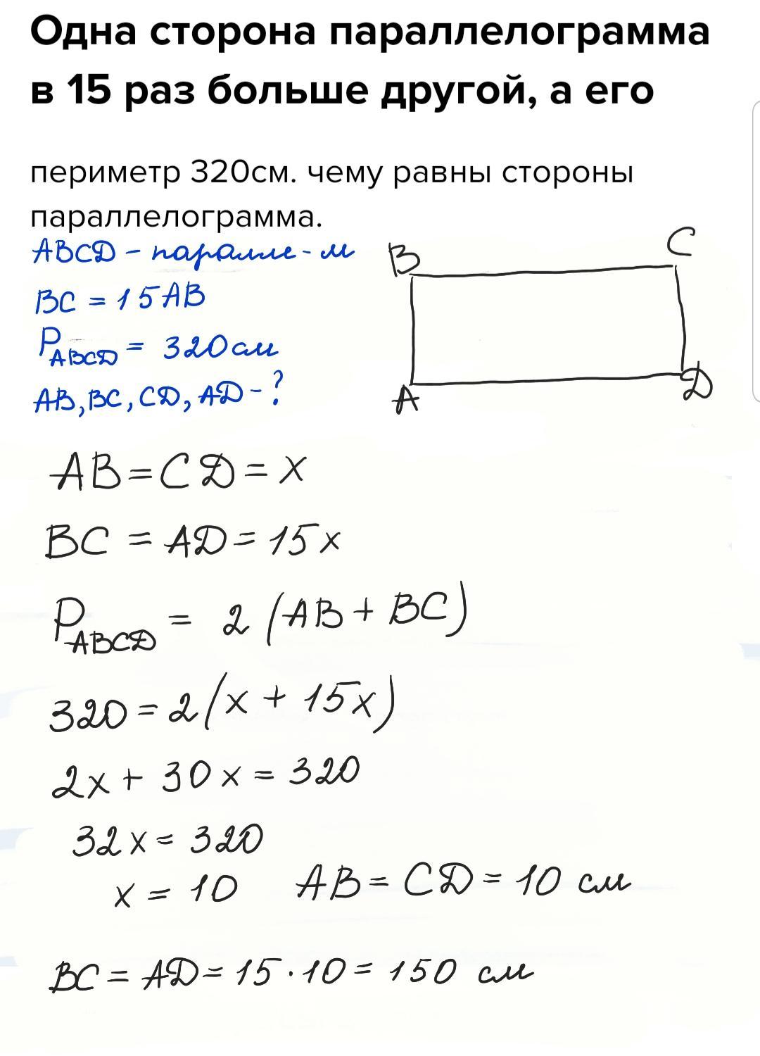 Одна сторона параллелограмма в 15 раз больше другой, а его