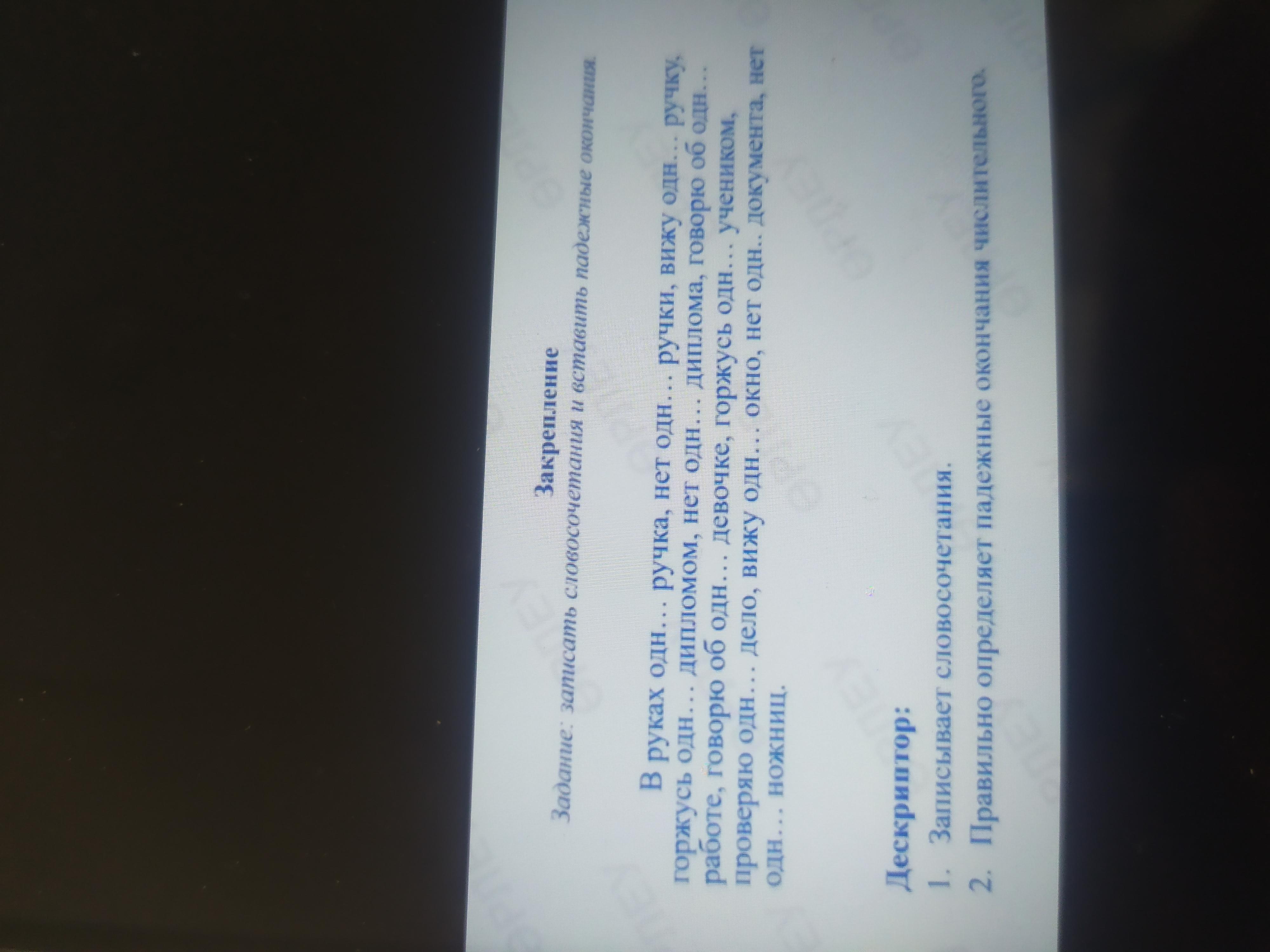 В руках одна ручка, нет одной ручки, вижу одну ручку, горжусь одним дипломом, нет одного диплома, говорю об одной работе, говорю об одной девочке, горжусь одним учеником, проверяю одно дело, вижу одно окно, нет одного документа, нет одних ножниц.