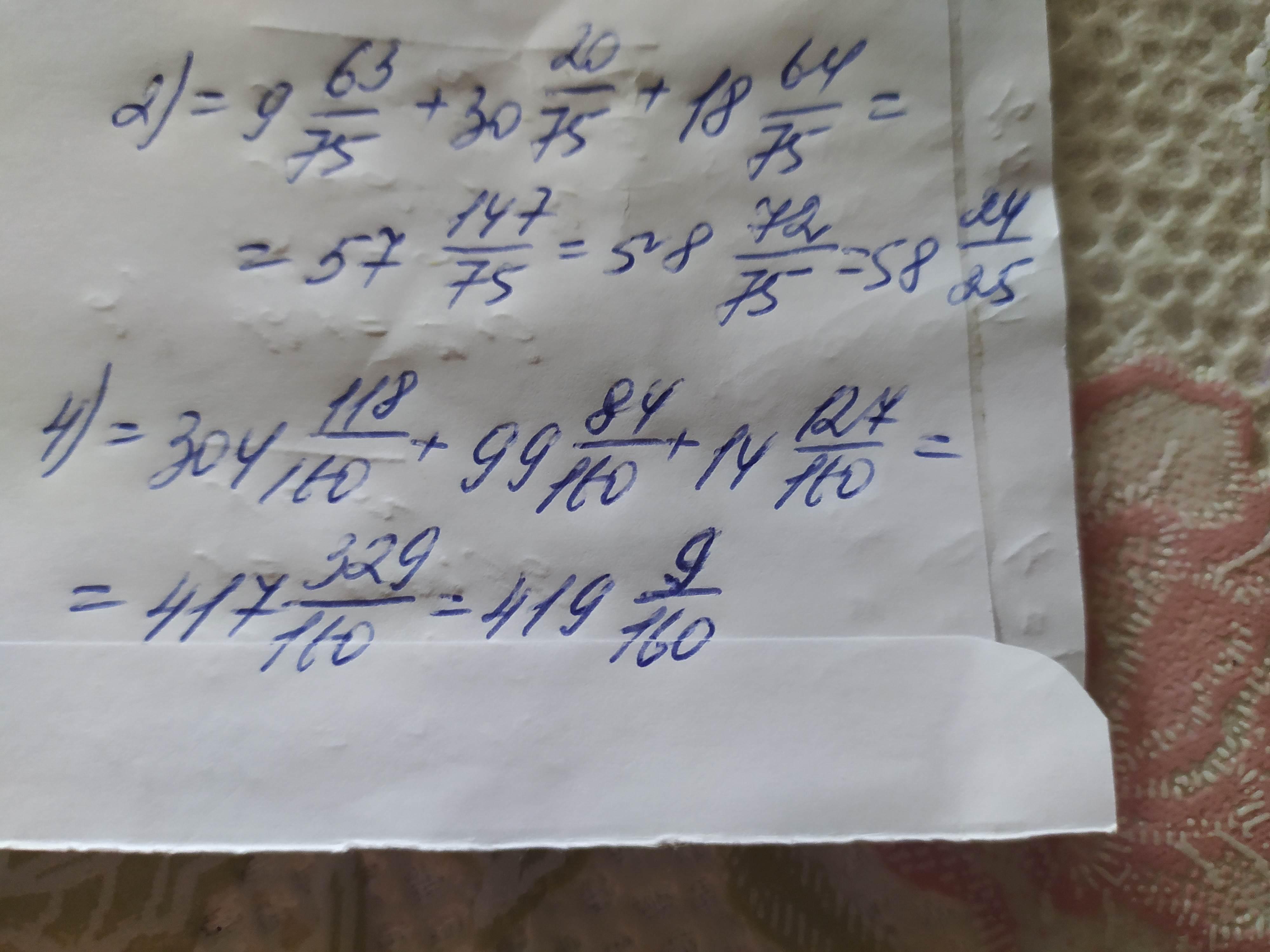 2)9 21/25+30 4/15 +18 64/75=9 63/75+30 20/75 + 18 64/75=58 72/75 =
