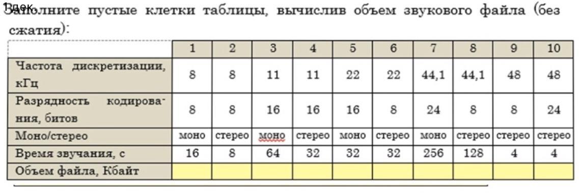 Объём файла, Кбайт 125 125 1375 1375 1375 1375 33075 11025 375 1125