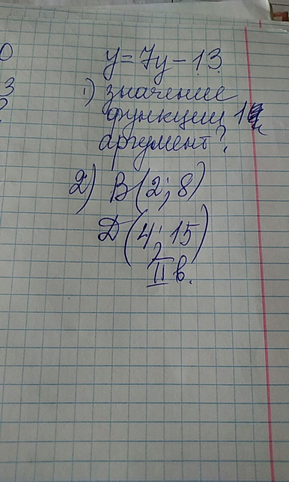 если я правильно поняла там надо выбрать что подходит, то к системе у=7х-13 подходит точка Д(4;15)