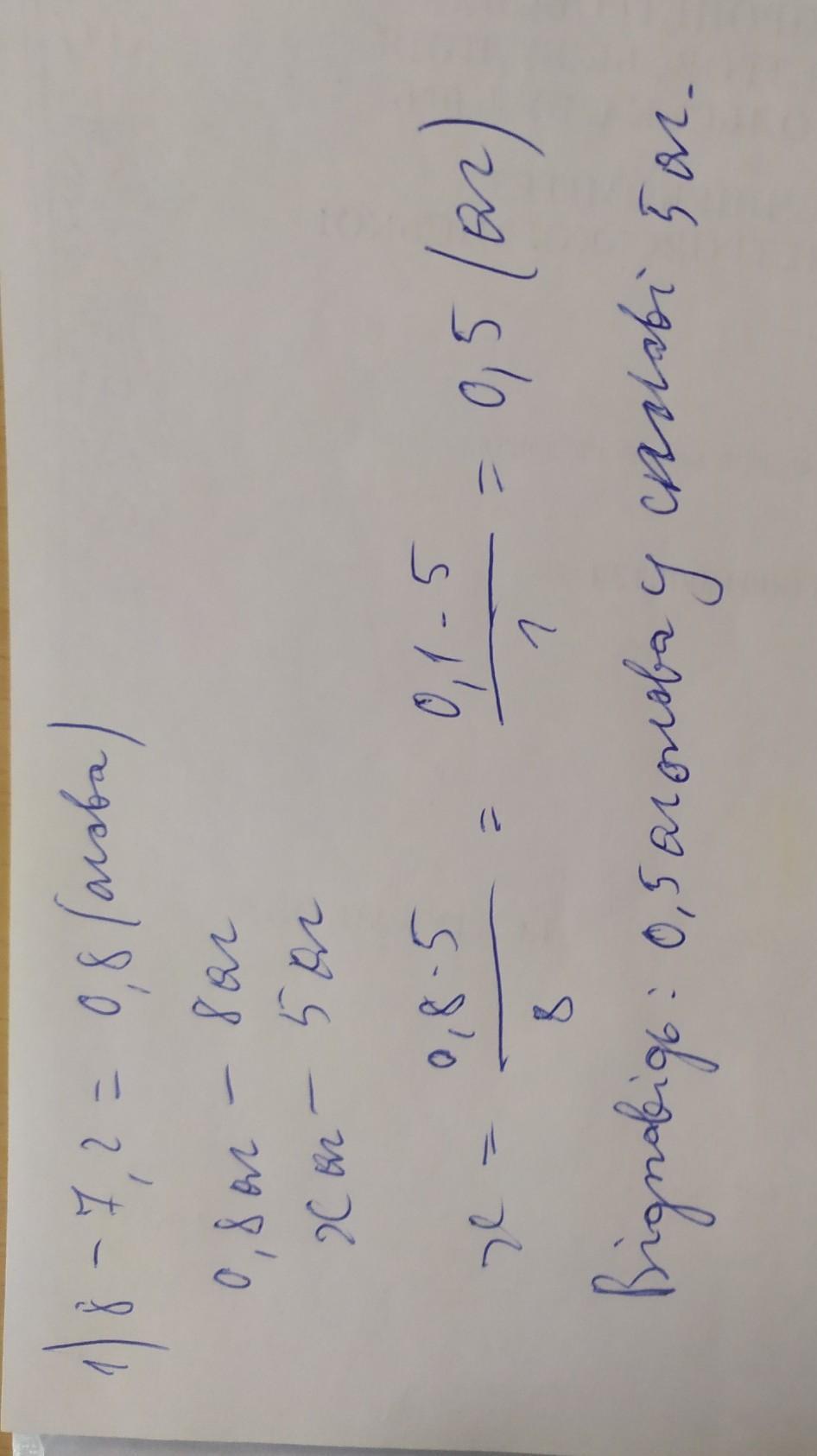 8-7,2=0,8 кг олова в сплаве массой 8 кг