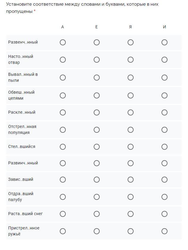 Установите соответствие между словами и буквами, которые в них пропущены