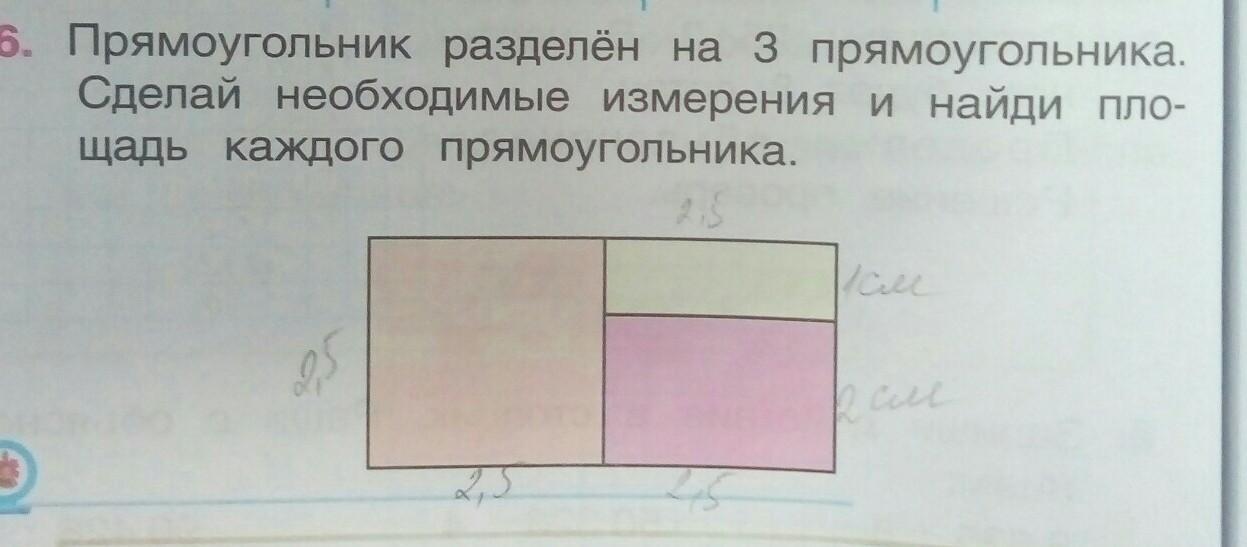 Жёлтый: 2,5 * 1 = 2,5 см^2